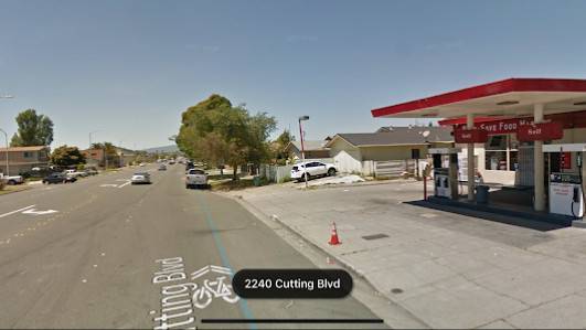The gas station is situated in Richmond, California, at the address 2221 Cutting Blvd, with easy access and parking facilities for customers.