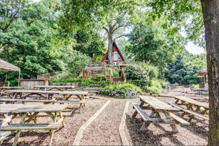 Great atmosphere and very clean. There is a bit of a walk to get to and from the parking/ sitting area. It is very much worth the walk. Being right by the river and being in trees is like being a child in a treehouse. I love the yummy options they have for food. We got a sweet wine. (And bought a second one because it was so good.) They have games that you can play. (Large Jenga and a large for in a row. They also have checkers vacuum in and a couple of other options you can get from the food area.) Definitely a great place to stop at when in town or to come to if you live here.