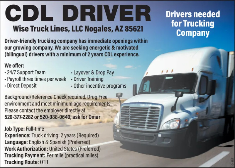 Located in Nogales, Arizona, Wise Truck Line operates in a strategic location that allows for seamless interstate and international shipping. The company's physical address, 14 Bravo Ln, is conveniently situated within the city, making it easy for clients to visit or for potential employees to apply.